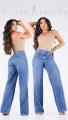 A Calça Jeans Wide Leg Azul Médio da Miller Denim Deluxe é a escolha ideal para quem busca estilo urbano, sofisticação e conforto em uma única peça. Com cintura alta e caimento amplo, ela alonga a silhueta e proporciona um visual moderno e imponente.