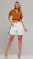 Bermuda Vanessa: conforto e estilo em 100% algodão. Esta bermuda de cintura alta com barra desfiada oferece um caimento moderno e versátil, ideal para composições casuais e elegantes. Perfeita para dias quentes, passeios ao ar livre ou momentos de lazer. Compre agora e sinta a combinação perfeita entre conforto e design.