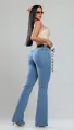 Calça Rebeca: Elegância e conforto em jeans premium. Com modelagem flare e cintura alta, esta calça 100% algodão oferece estilo atemporal e toque macio para o dia a dia. Ideal para ocasiões casuais ou para um look sofisticado no trabalho. Invista em qualidade e versatilidade para seu guarda-roupa. Compre a Calça Rebeca e sinta a diferença.